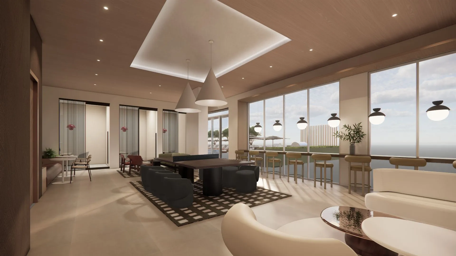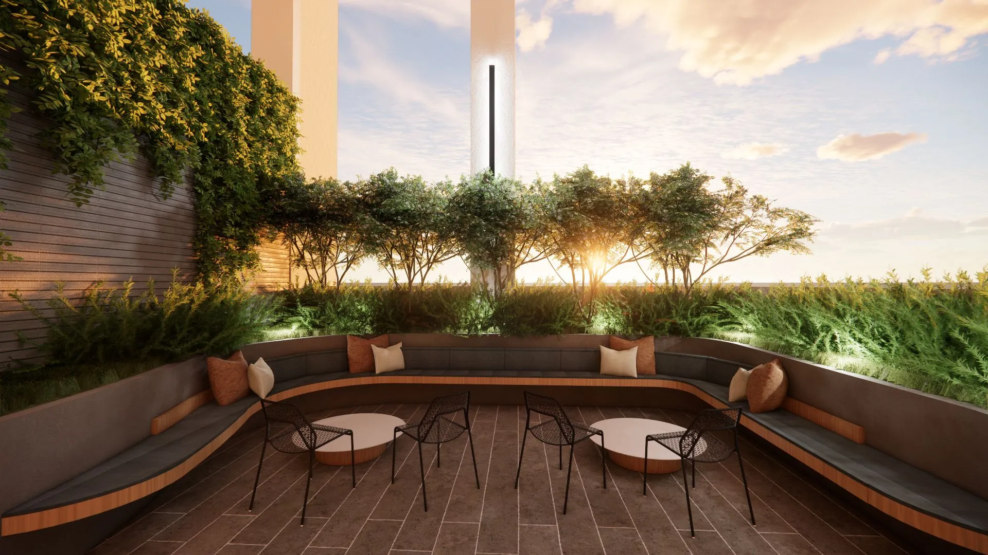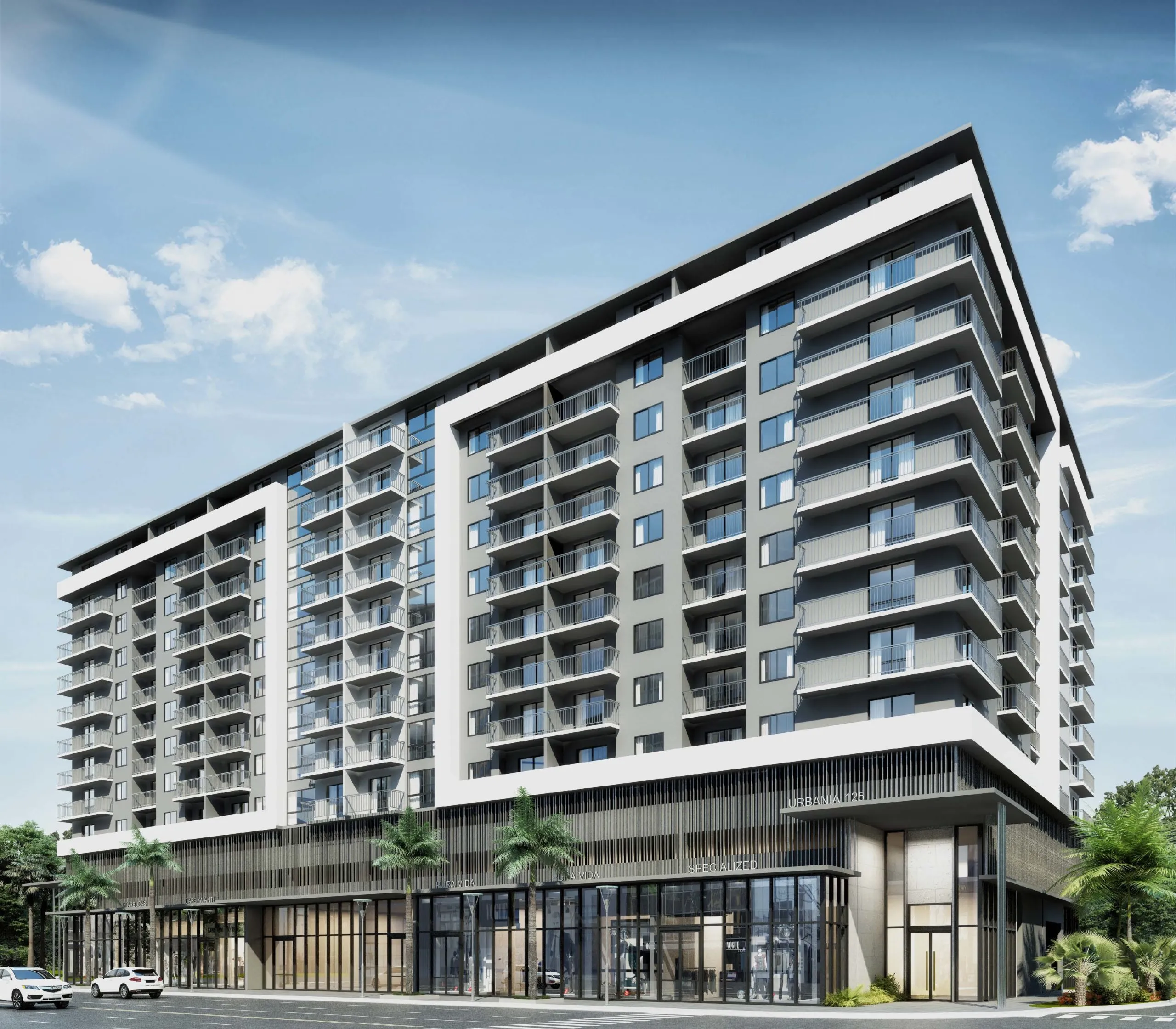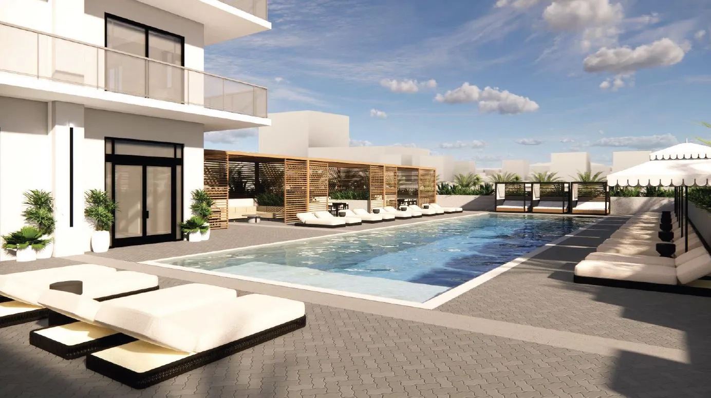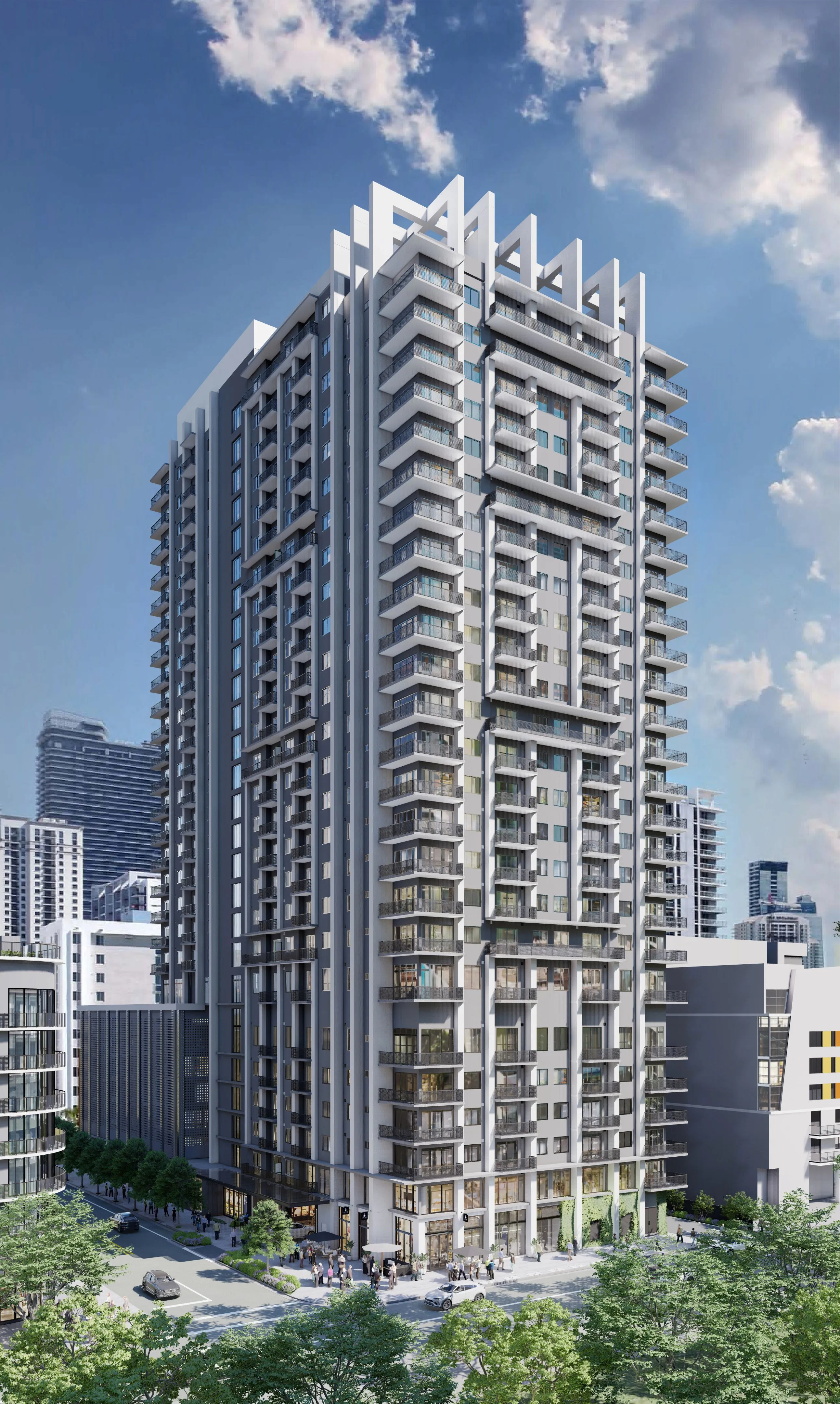The Perrin is a proposed 26-story mixed-use development featuring 310 residential units and ground-floor retail space. The project includes a six-story parking structure and residential amenities located on level 7, including a fitness center, coworking space, community lounge, and pool deck. The top floor offers an additional lounge and outdoor zen garden with city views.